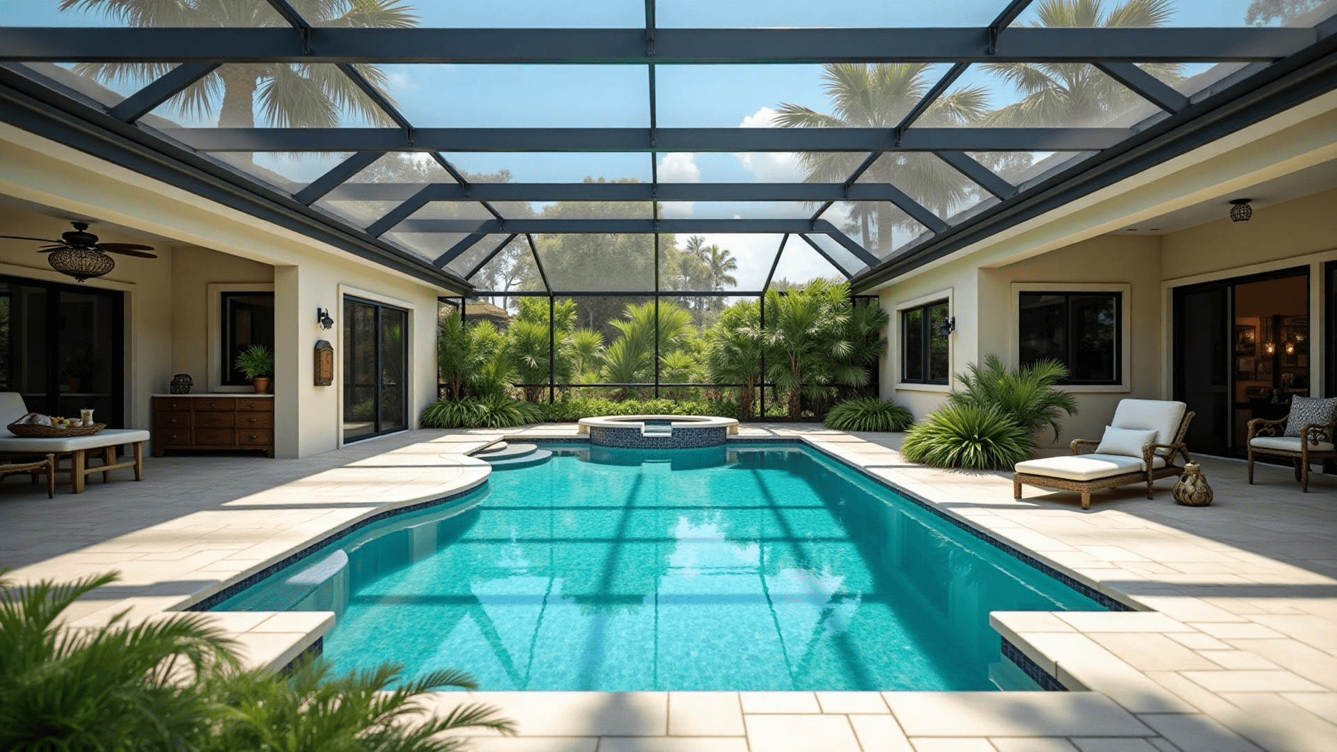 Our premium aluminum pool enclosures Orlando residents trust are engineered specifically for Central Florida's unique climate challenges. From intense summer heat and afternoon thunderstorms to occasional cold snaps, our pool cage installations provide comprehensive protection while maintaining the open-air feel that makes Florida living so desirable. Each pool enclosure is custom-designed to complement your home's architecture and pool design.